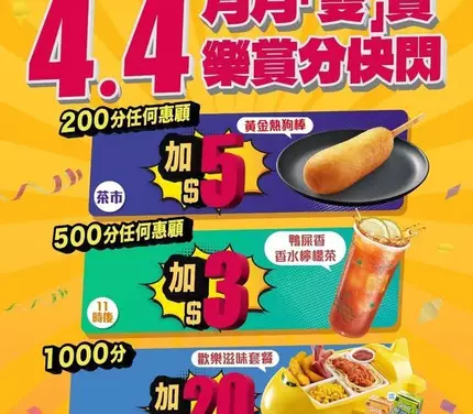 【🐰大家樂4.4月月「雙」賞快閃優惠🔥丨復活節X兒童節驚喜優惠Level Up!】