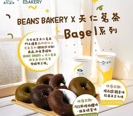 【比高回歸!唔洗心掛掛 🥯】天仁茗茶 × 𝐁𝐄𝐀𝐍𝐒 𝐁𝐀𝐊𝐄𝐑𝐘 聯乘Bagel