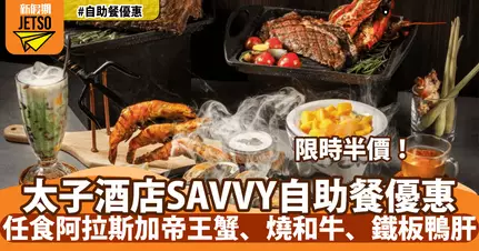 太子酒店SAVVY自助餐快閃5折!任食燒龍蝦、阿拉斯加帝王蟹、鐵板燒和牛
