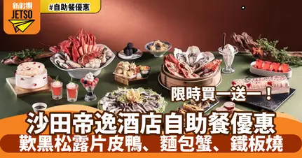 KKday與沙田帝逸酒店Alva House再度推出自助餐買一送一快閃優惠,折後自助午餐人均低至HK$264,而全新主題「松露‧珍菌‧海鮮三重奏」自助晚餐亦只需HK$468起,即可無限暢享即開生蠔、凍龍蝦、鱈場蟹腳及黑松露片皮鴨等多款回本美食。立即查看下方優惠詳情,準時開搶!