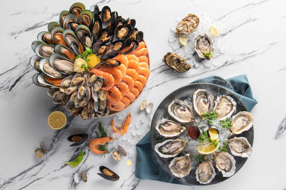 - 冰鎮海鮮:即開生蠔、凍龍蝦、鱈場蟹腳、麵包蟹、青口
