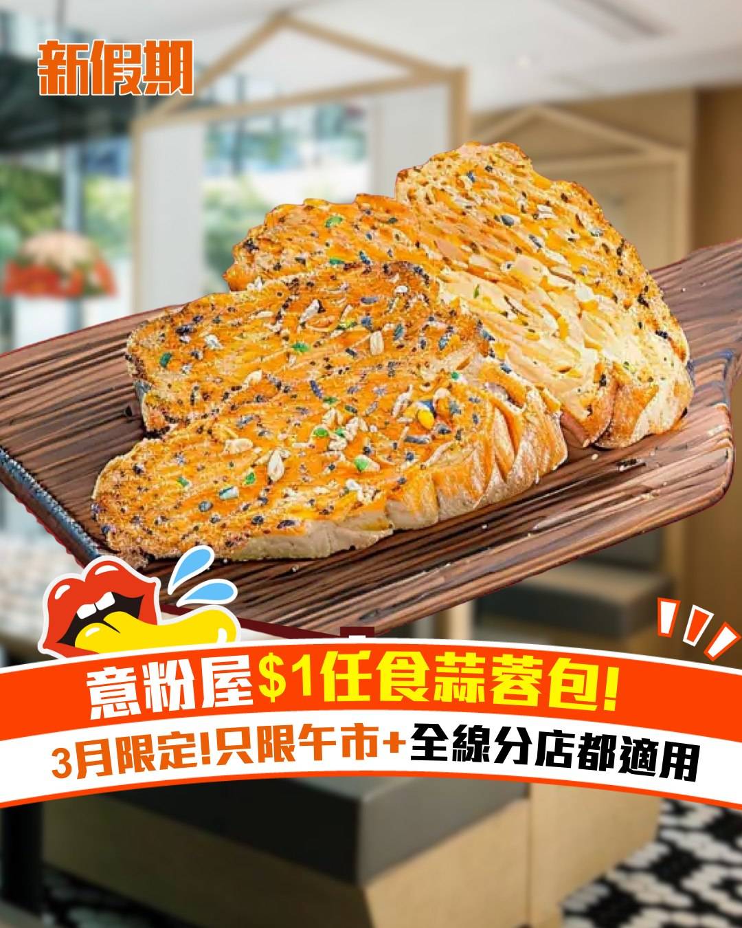 新假期著數 意粉屋$1任食蒜蓉包!3月限定!只限午市+全線分店都適用