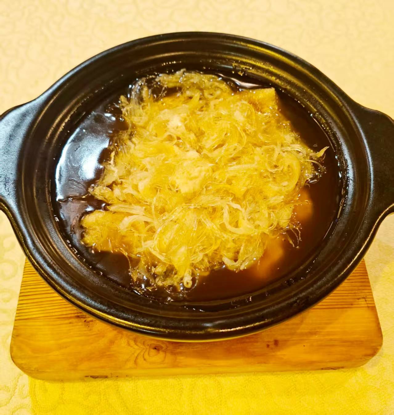 鴛鴦魚頭王係湘菜嘅「靈魂」,亦係書湘門第嘅鎮店之寶。魚頭一分為二,分別鋪滿剁椒同醬椒。紅椒偏鮮辣,青椒則帶有一種獨特的酸辣清爽。魚頭肉質極之嫩滑,充滿膠原蛋白。最精華嘅係魚腦同魚皮,吸晒兩種辣椒嘅精華。