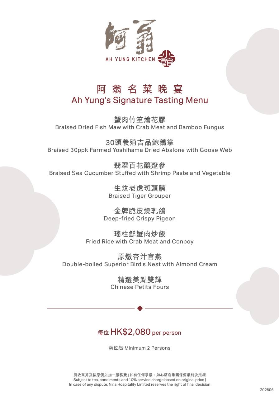 位於銅鑼灣如心酒店內的「阿翁小館」,由著名「鮑魚大王」楊貫一的徒弟翁仰光先生主理。這裏是追求精緻粵菜與高級海鮮的首選之地。餐廳以招牌吉品鮑魚聞名,燜煮火候極為講究,溏心效果完美。除了頂級鮑參翅肚,其生炒糯米飯及各類時令小菜亦展現了深厚的傳統功底,環境優雅安靜,非常適合商務聚會或家庭慶祝。