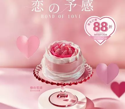 - 優惠詳情:情人節系列蛋糕優先預訂88折