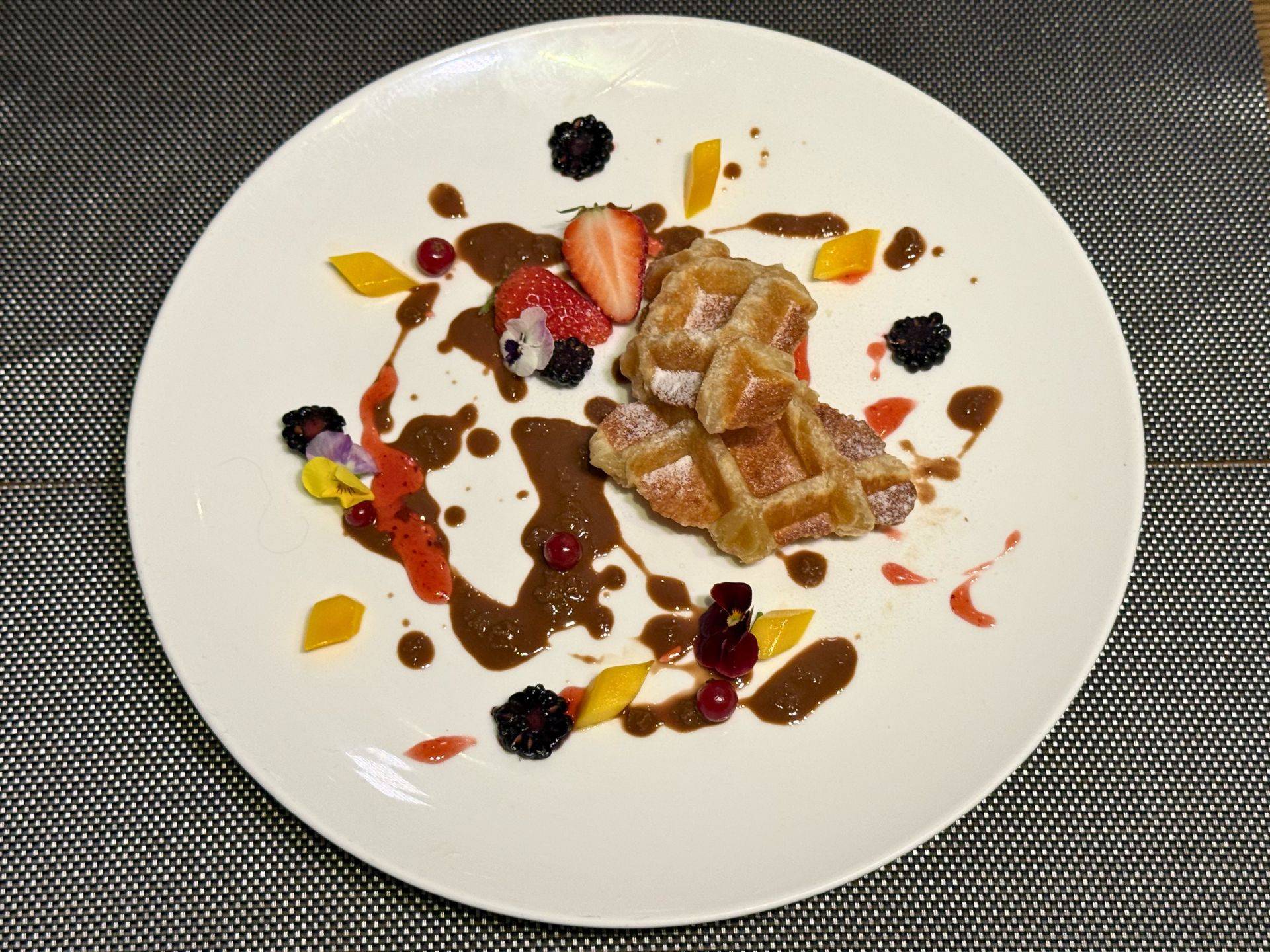 - 甜品:即場製作牛角包窩夫、法式焦糖燉蛋