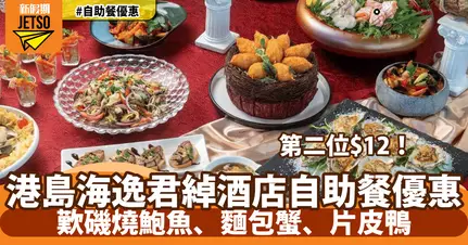 KKday與港島海逸君綽酒店咖啡廳再度合作,推出自助餐快閃優惠,第二位只需HK$12!折後「鮑魚 x 麵包蟹」主題自助午餐人均消費低至HK$263,而「海鮮嘉年華」自助晚餐亦只需HK$449起,即可無限品嚐即開生蠔、波士頓龍蝦、多款鮑魚及蟹饌美食。立即查看下方優惠詳情,準時開搶!