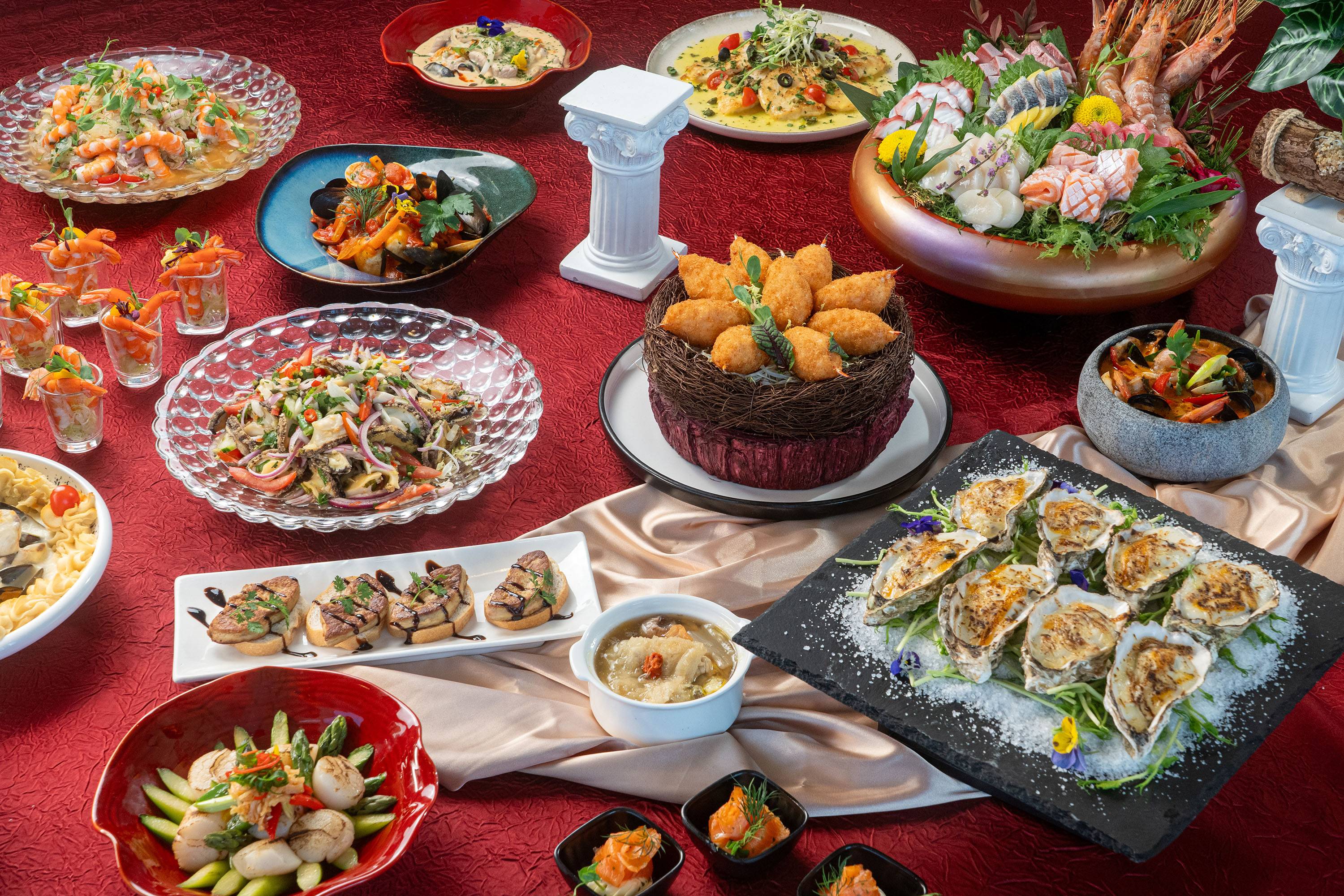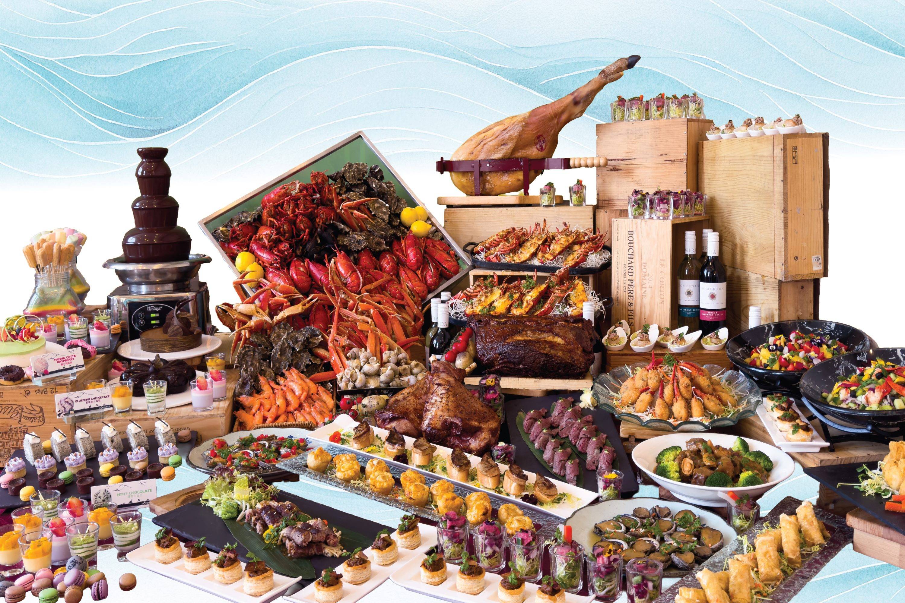 - 海鮮:精選波士頓龍蝦、蟹腳、特大阿根廷蝦、新鮮日式刺身