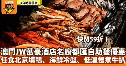 澳門JW萬豪酒店自助餐快閃59折!任食北京填鴨、海鮮冷盤、低溫慢煮牛扒