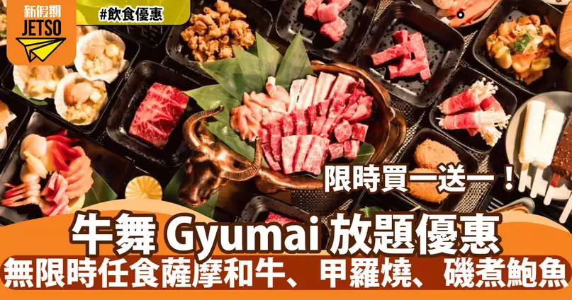 牛舞 Gyumai放題買一送一!無限時任食薩摩和牛、甲羅燒、磯煮鮑魚