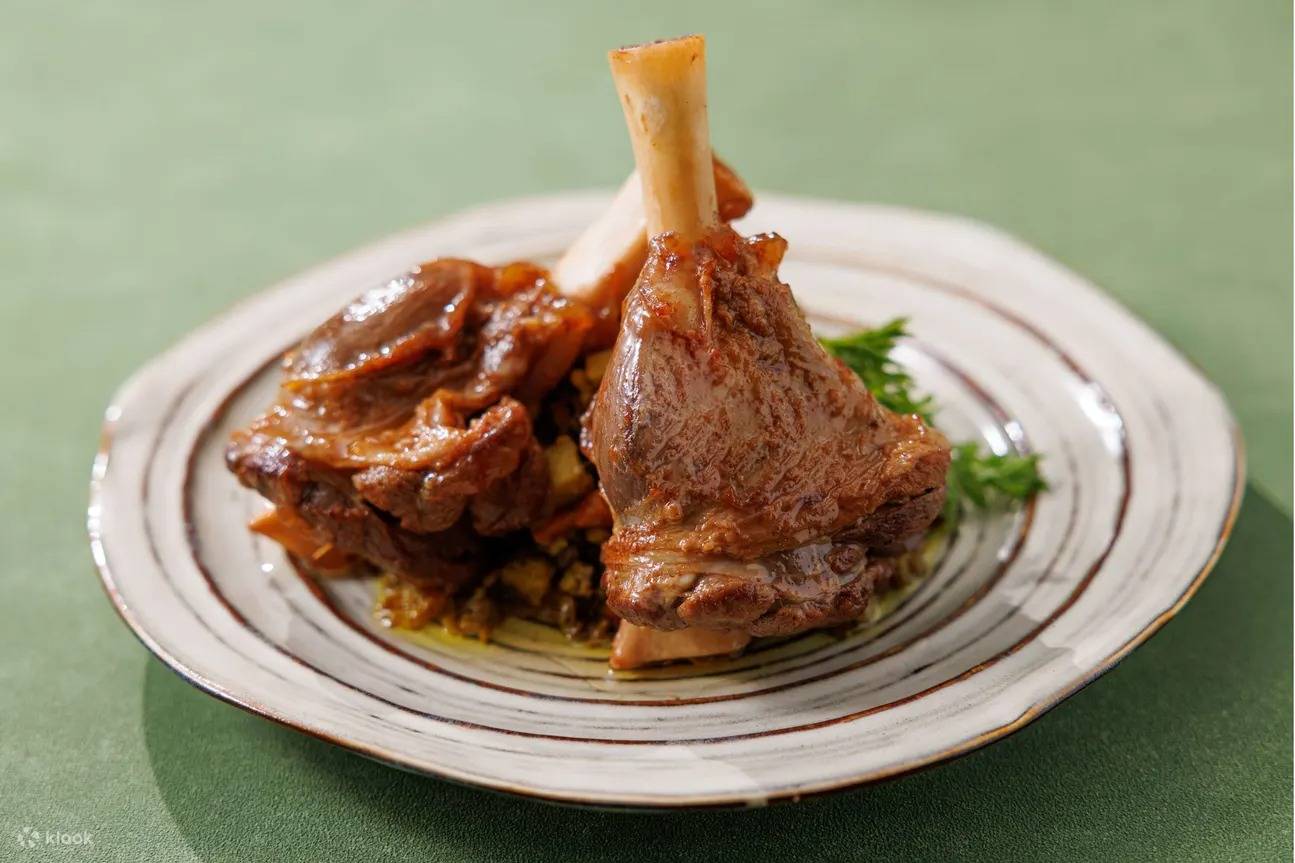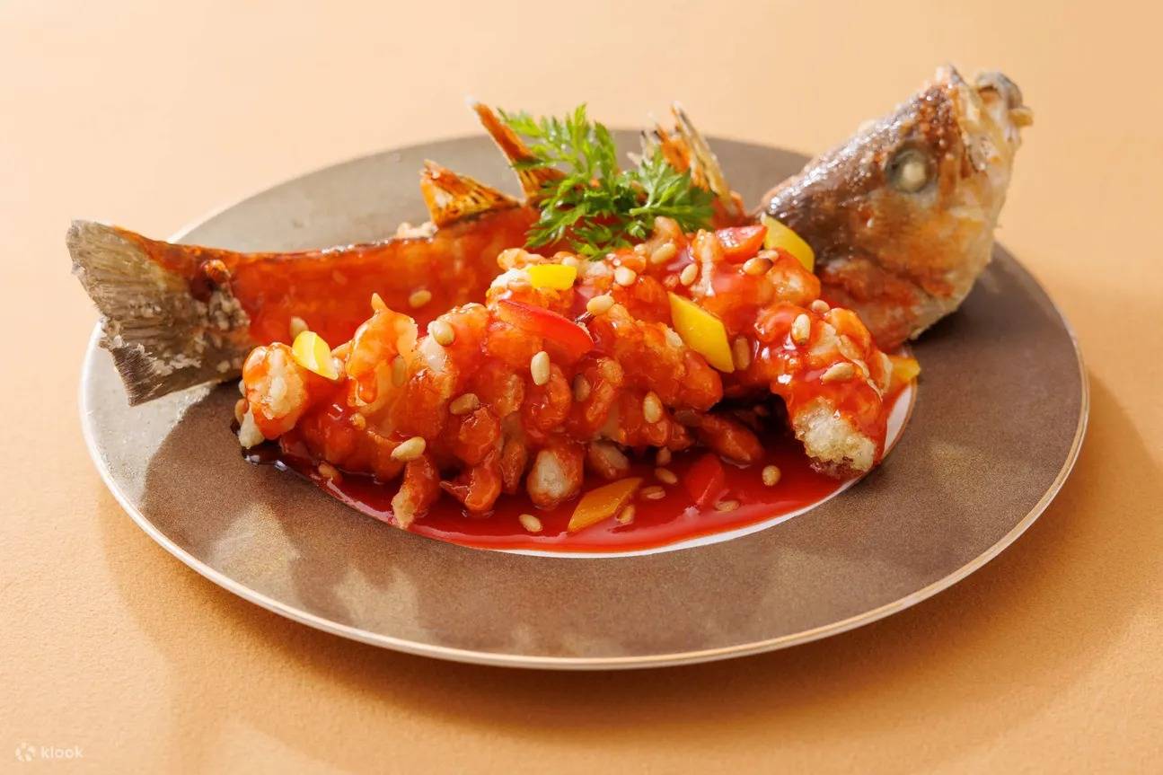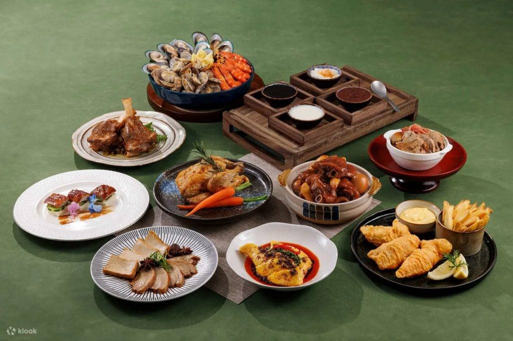 - 熱葷:蒙古孜然烤羊腿、威靈頓牛柳、避風塘炒蟹配蒜香蛋黃醬、迷迭香烤春雞、川式甜酸松子魚