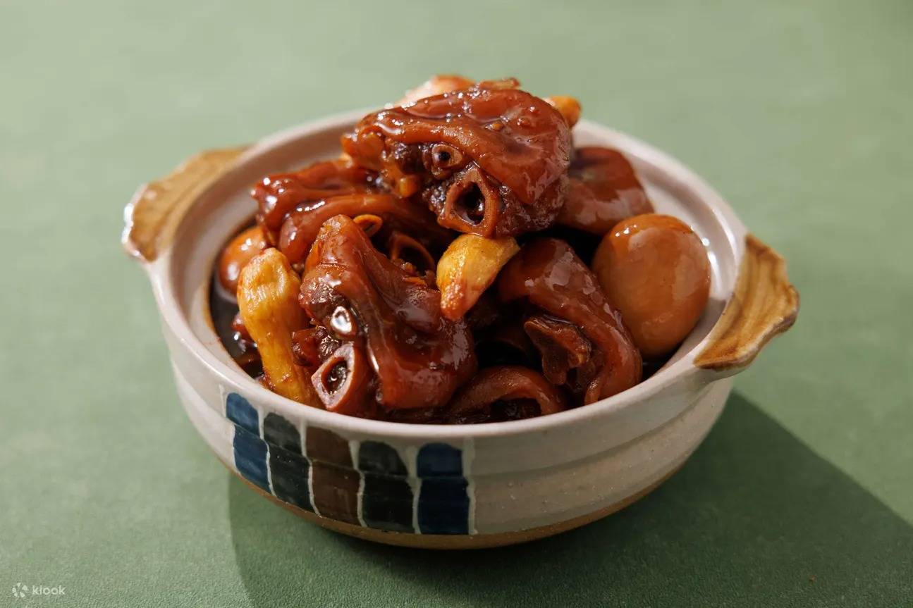 - 熱葷:川味口水雞、雲南火腿松茸炆燉牛仔膝、炸魚薯條、蘭度豆燴威爾斯羊小腿、迷迭香烤春雞、百樂豬腳薑醋、薑蔥三文魚頭腩、潮州鹵水鴨胸拼XO醬鹵水豆腐、片皮鴨