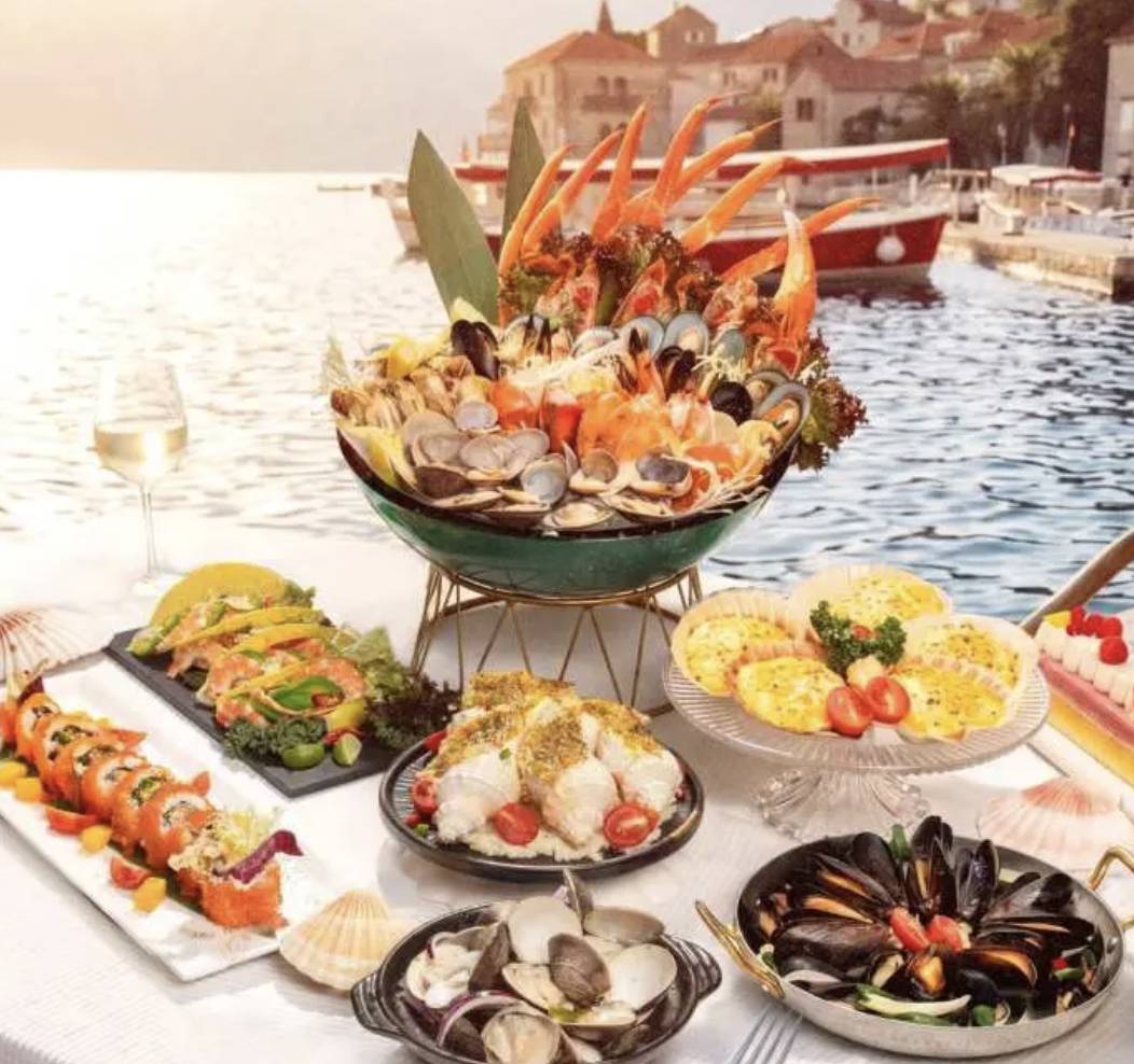 - 冰鎮海鮮:波士頓龍蝦、雪蟹腳、熟蝦、藍青口、翡翠螺等