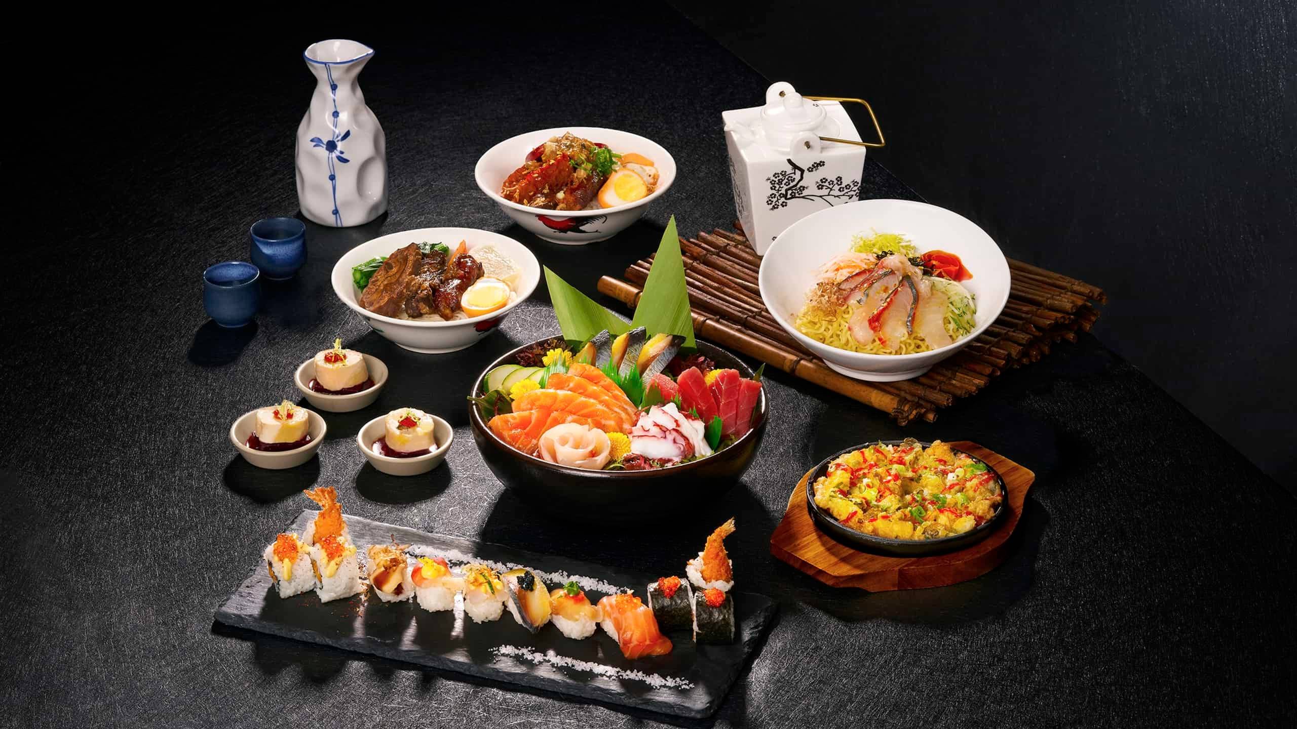 • 主題美食:火瞳金絲花膠海蔘燴燕窩、紅燒頂湯花膠螺片扣鴨掌、川辣妃子醉鮑魚、海膽蟹皇花膠親子丼、燕窩吞拿魚腩茸軍艦