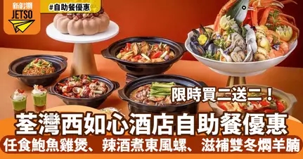荃灣西如心酒店自助餐買二送二!歎鮑魚雞煲、辣酒煮螺、滋補雙冬燜羊腩