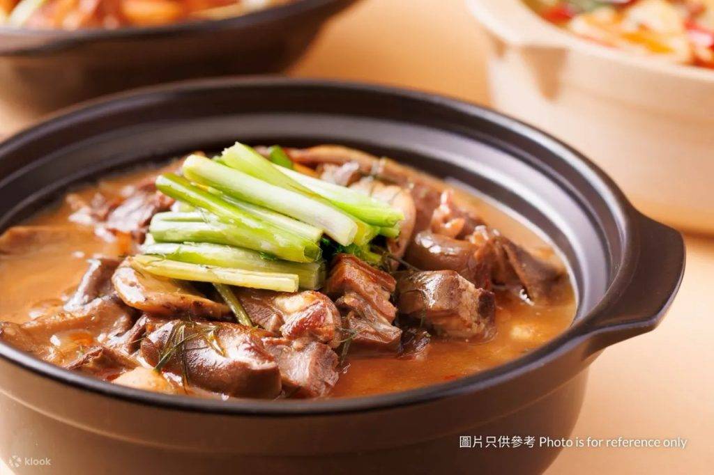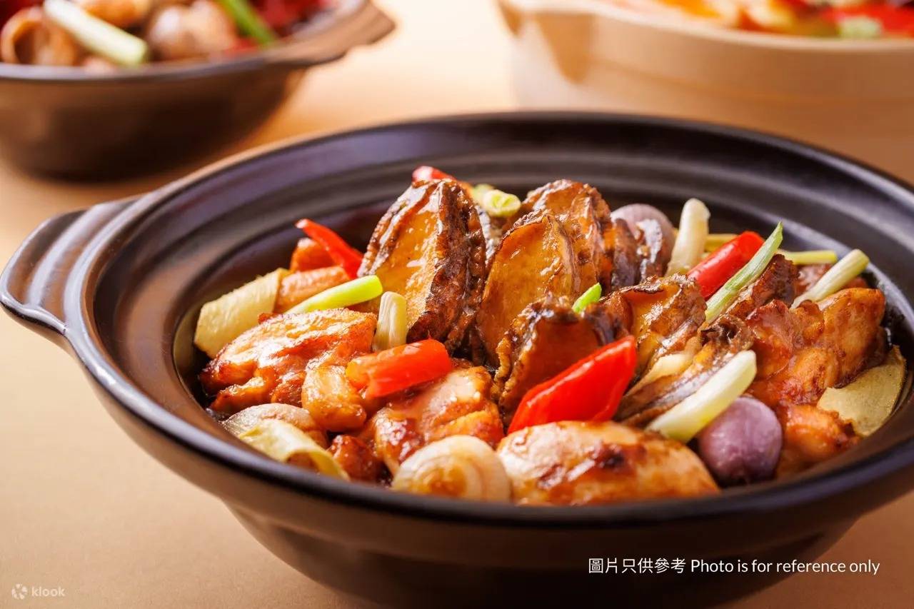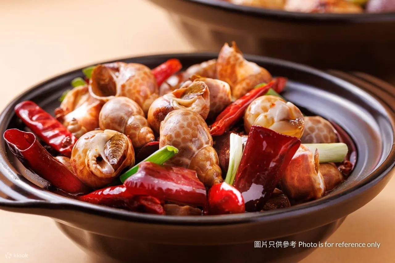 • 熱葷:鮑魚雞煲、辣酒煮東風螺、滋補雙冬燜羊腩