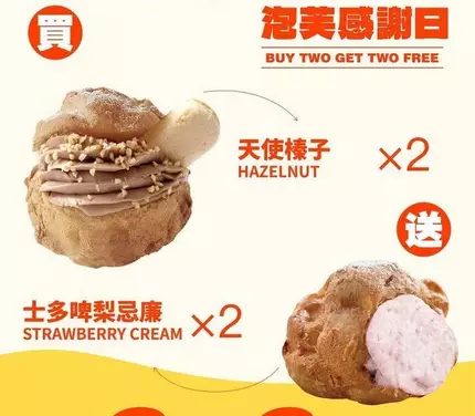 - 優惠詳情:購買〖天使榛子〗2件,贈送〖士多啤梨忌廉〗2件