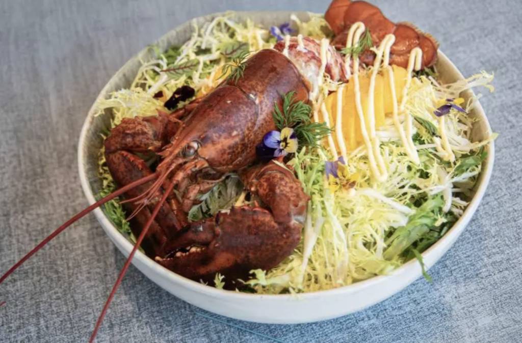 - 冰鎮海鮮及其他熱葷:涼拌鮑魚片、泰式鮑魚粉絲沙拉、炸龍蝦尾咸蛋黃