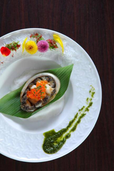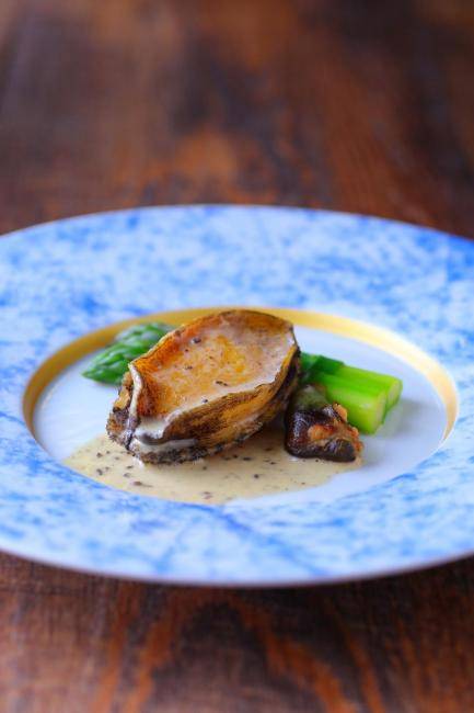 - 鐵板燒南非鮑魚配紫菜蠔汁