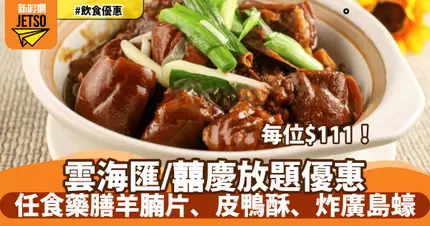 【3小時放題】雲海匯、囍慶科學園、囍慶顯徑|藥膳羊腩+片皮鴨放題|人均低至HK$111