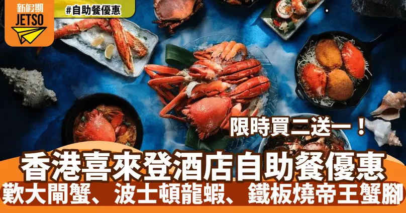 Klook聯同香港喜來登酒店咖啡廳推出「環球珍蟹百味自助餐」快閃優惠,自助午餐、晚餐限定買二送一!折後自助午餐人均低至HK$320,自助晚餐更只需HK$589起,即可任食清蒸大閘蟹、波士頓龍蝦、即開生蠔及多款蟹饌主題美食。立即查看下方優惠詳情,準時開搶!