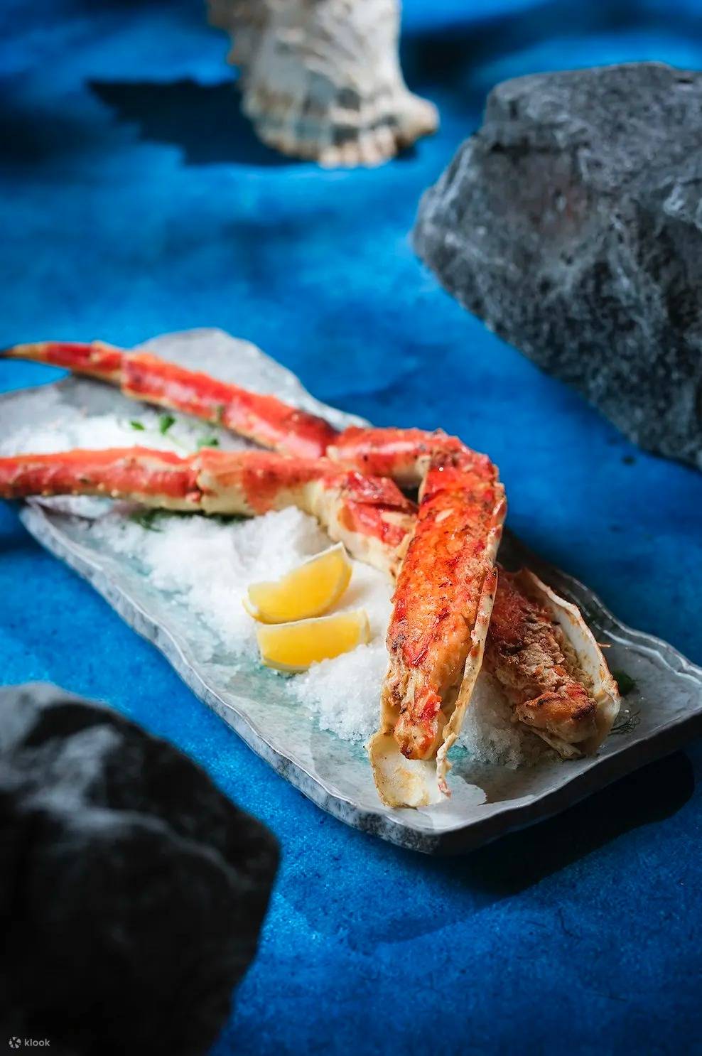 - 蟹饌主題:清蒸大閘蟹(週末限定,每位一隻)、阿拉斯加帝王蟹蟹腳鐵板燒、意式紅花蟹肉蟹籽芝士長通粉