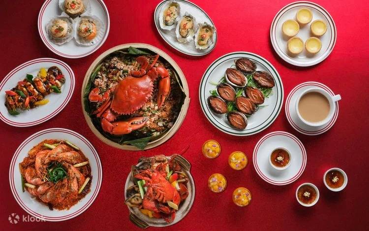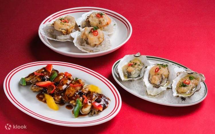 - 晚餐限定:清蒸陳皮原隻鮑魚(週末限定)、即切日本鰤魚刺身(週末限定)、薑蔥海鮮煲、酥炸港式蠔餅、避風塘爆炒大蝦、蒜蓉粉絲蒸扇貝