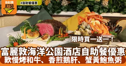 香港富麗敦海洋公園自助餐買一送一!歎香煎鵝肝、慢烤和牛肩胛、蟹黃鮑魚海鮮粥