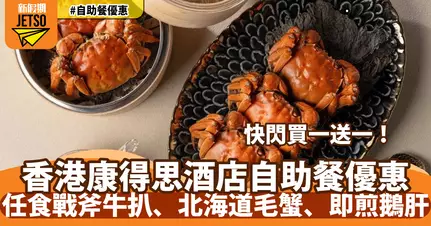 Klook與香港康得思酒店The Place再度合作,推出自助午餐買一送一快閃優惠,折後人均消費低至HK$239,即可品嚐時令大閘蟹、北海道毛蟹、新鮮生蠔、鐵板香煎鵝肝等秋日盛宴。立即查看下方優惠詳情,準時開搶!