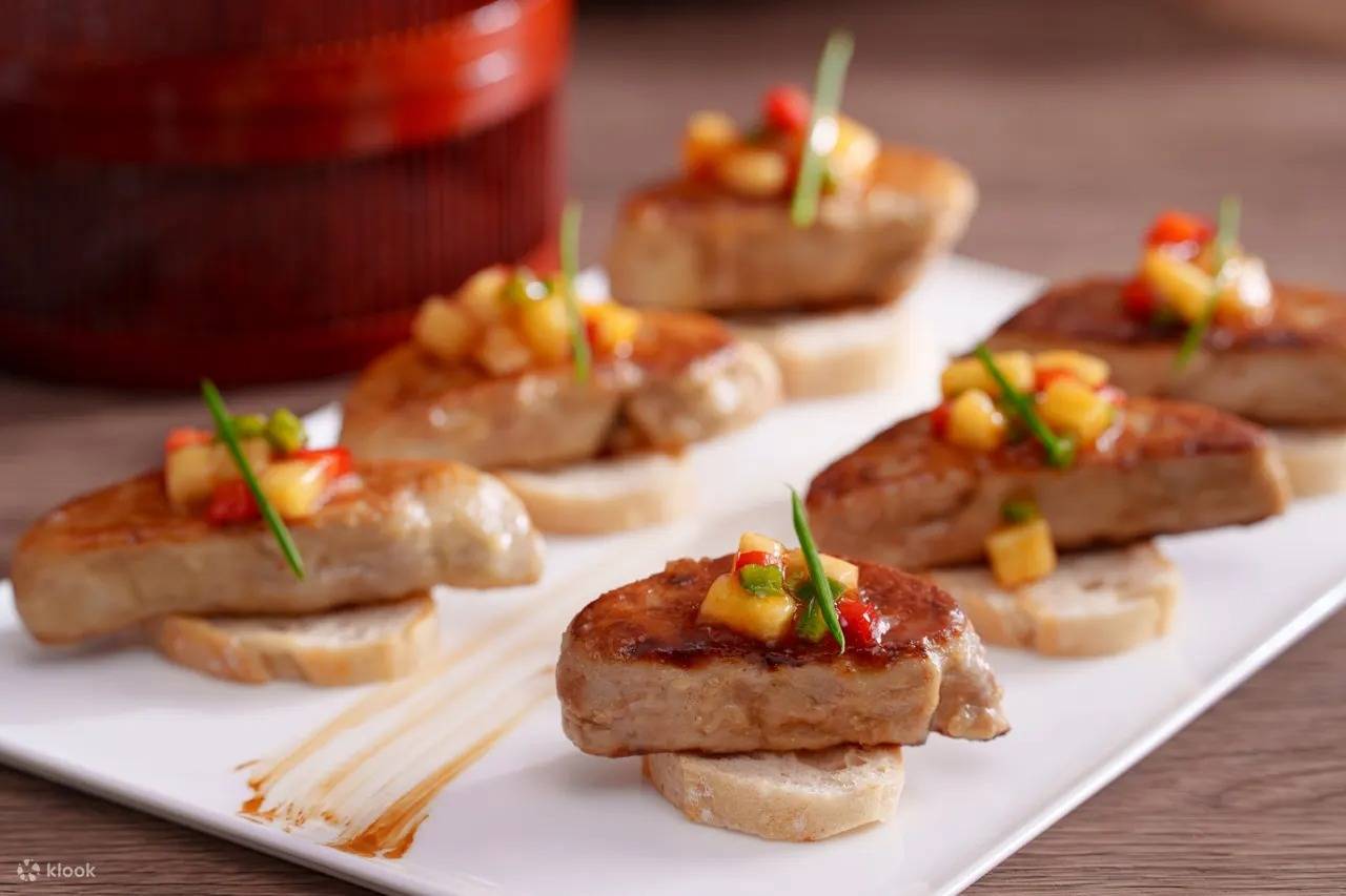 - 熱葷:法國鴨肝、澳洲穀飼牛肉眼、花膠燉湯
