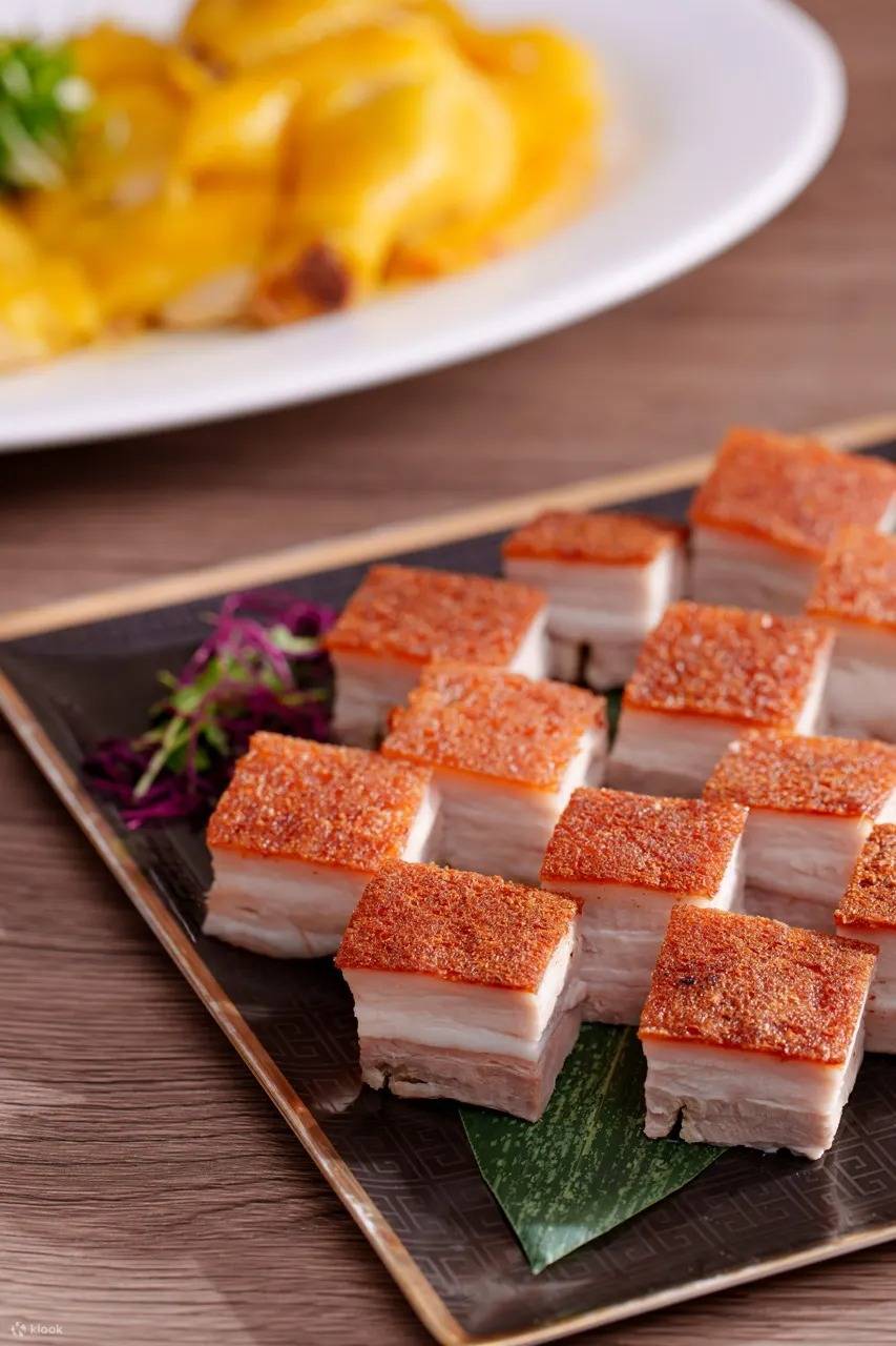 - 熱葷:烤南澳洲36° MB2 ⾦奬⽜肩胛⾁、蜜汁烤⽐利時杜洛克豬柳、沙⽥雞粥、煎⽺扒配腐乳醬
