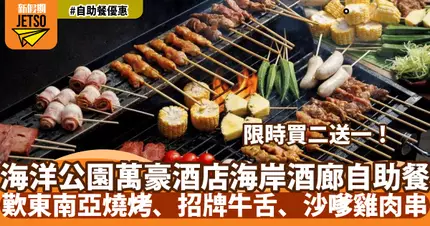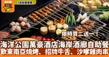 香港海洋公園萬豪酒店自助餐買二送一!歎東南亞燒烤、招牌牛舌、沙嗲雞肉串