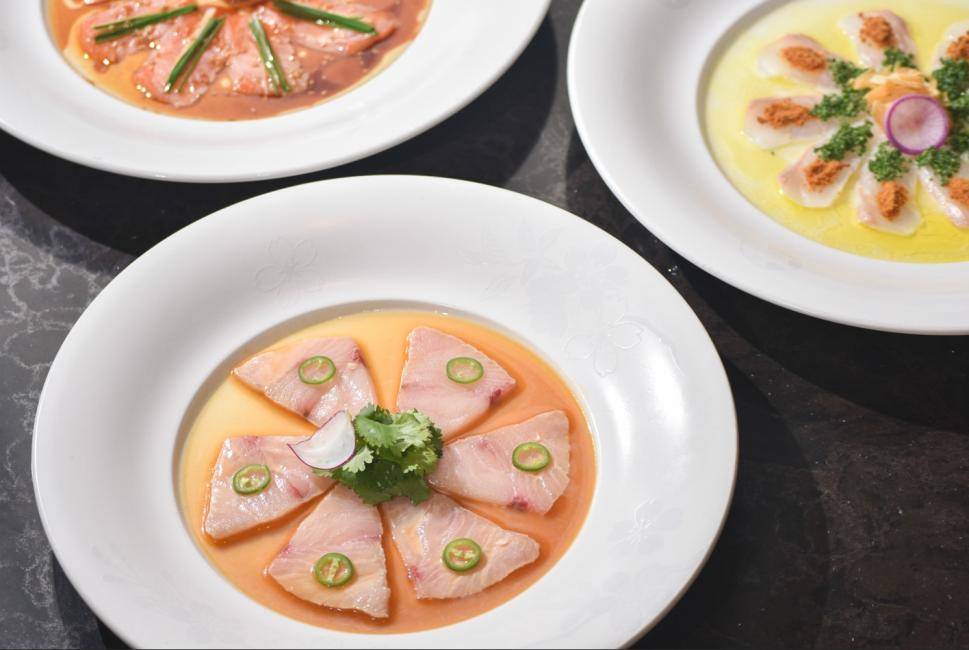 - 前菜:生蠔配甜瓜莎莎醬或松葉蟹配蟹味噌、燉煮鮟鱇魚肝配柚子胡椒醋汁