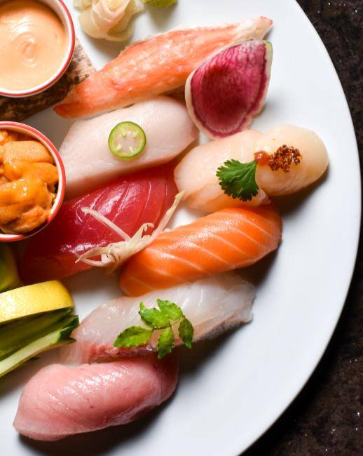 - 壽司及湯品:主廚特選壽司拼盤配大根清湯