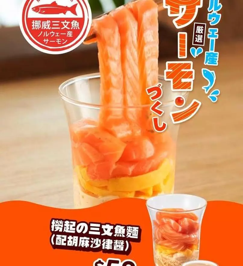 - 優惠詳情:期間限定撈起の三文魚麵 (配胡麻沙律醬) $58