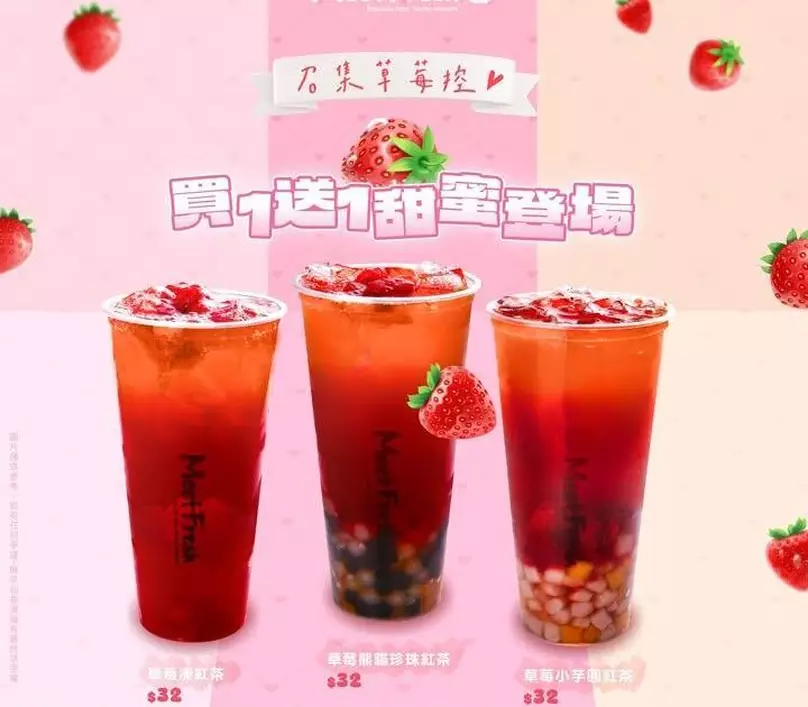 • 優惠詳情:購買草莓茶飲系列享買一送一
