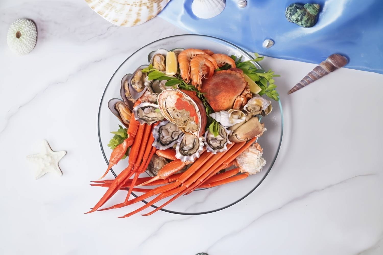 - 冰鎮海鮮:鱈場蟹腳、生蠔、麵包蟹、海蝦、海螺、青口