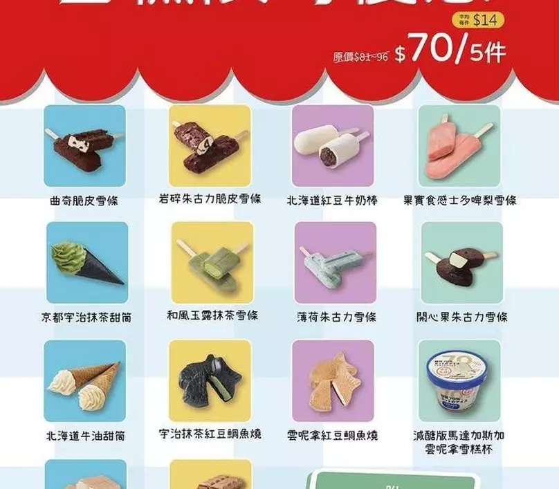 - 優惠詳情:Purchase 5 selected ice cream items for only HK$70