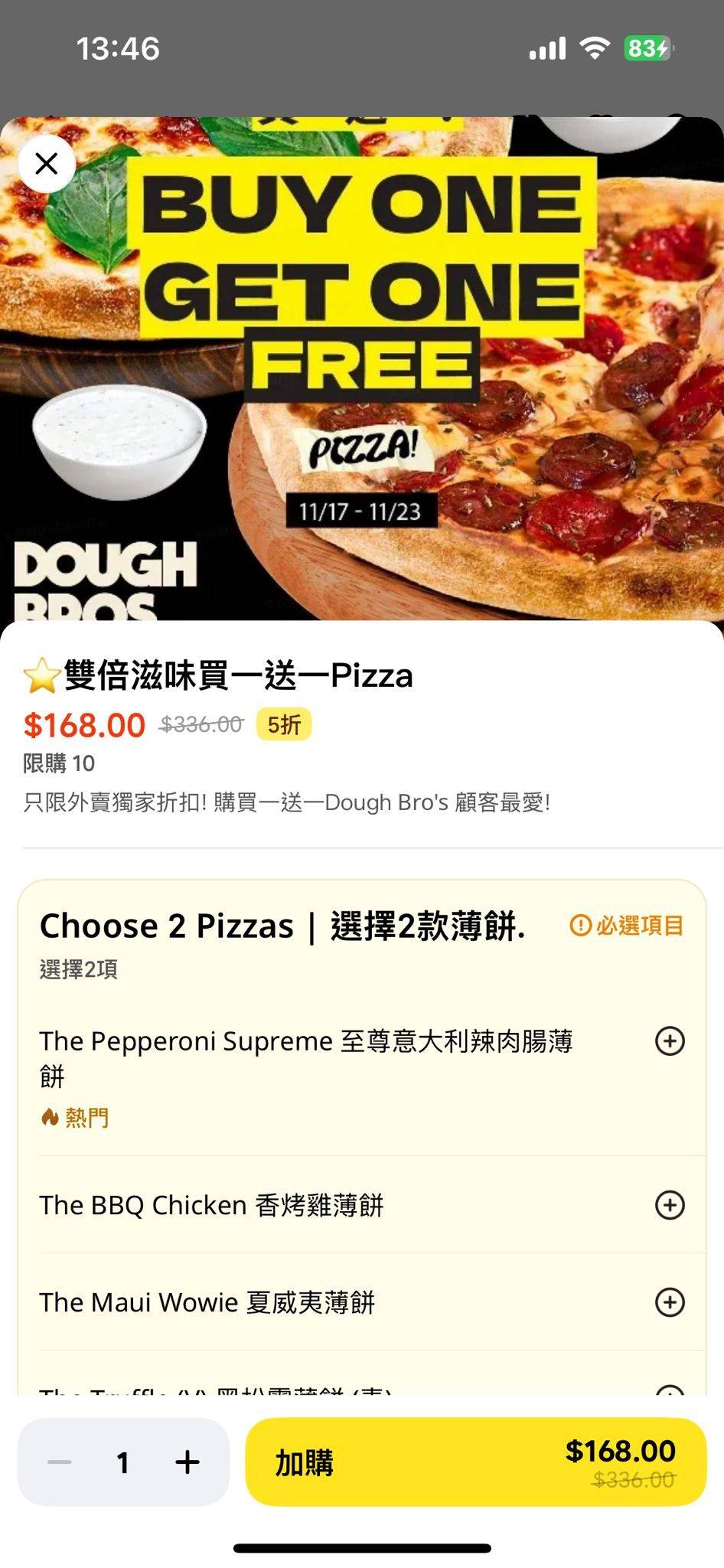 Dough Bros限時買一送一!4款味任揀:黑松露/意大利辣肉腸