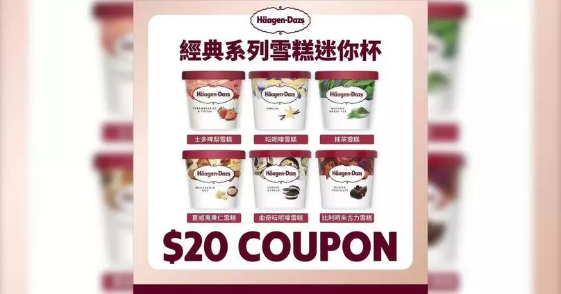 - 優惠詳情:Häagen-Dazs™經典系列雪糕迷你杯$20限時優惠
