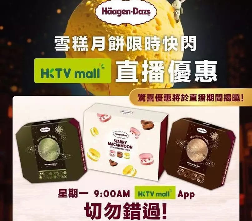 想買Häagen-Dazs™ 雪糕月餅嘅大家就千祈唔好錯過聽日嘅HKTVMALL App 嘅直播喇!😎直播期間將會揭曉限定嘅快閃優惠!🤩想知道嘅話就聽朝 9:00 準時打開HKTVMALL App睇啦!😏