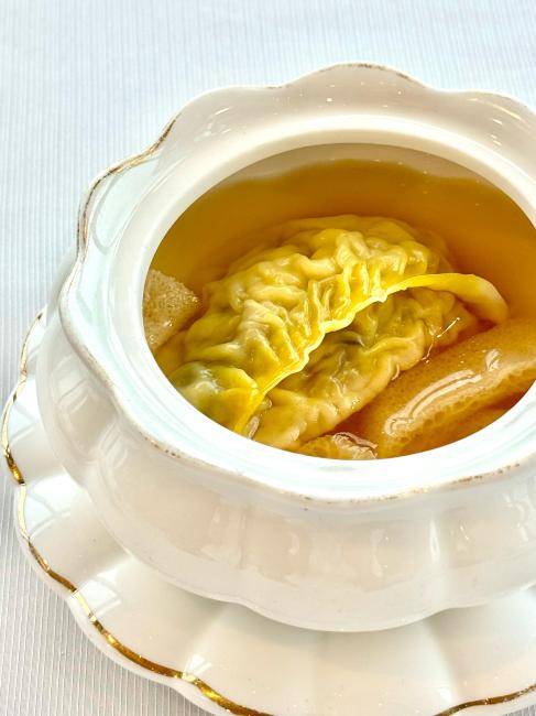 - 點心:波士極灌湯餃、煙熏流心蛋、松露脆皮豬、辣避風塘燒賣、熊貓雞包仔