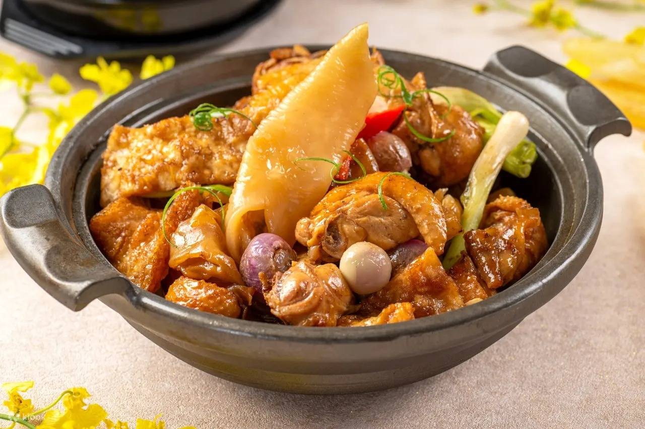 - 「珍饈燕會」主題美食:燕窩三文魚青檸慕斯、蒜蓉牛油焗鮮鮑魚(每位一客)、鮑汁炆魚肚花膠雞鍋、手打鮮龍蝦汁帶子鮑魚闊條麵