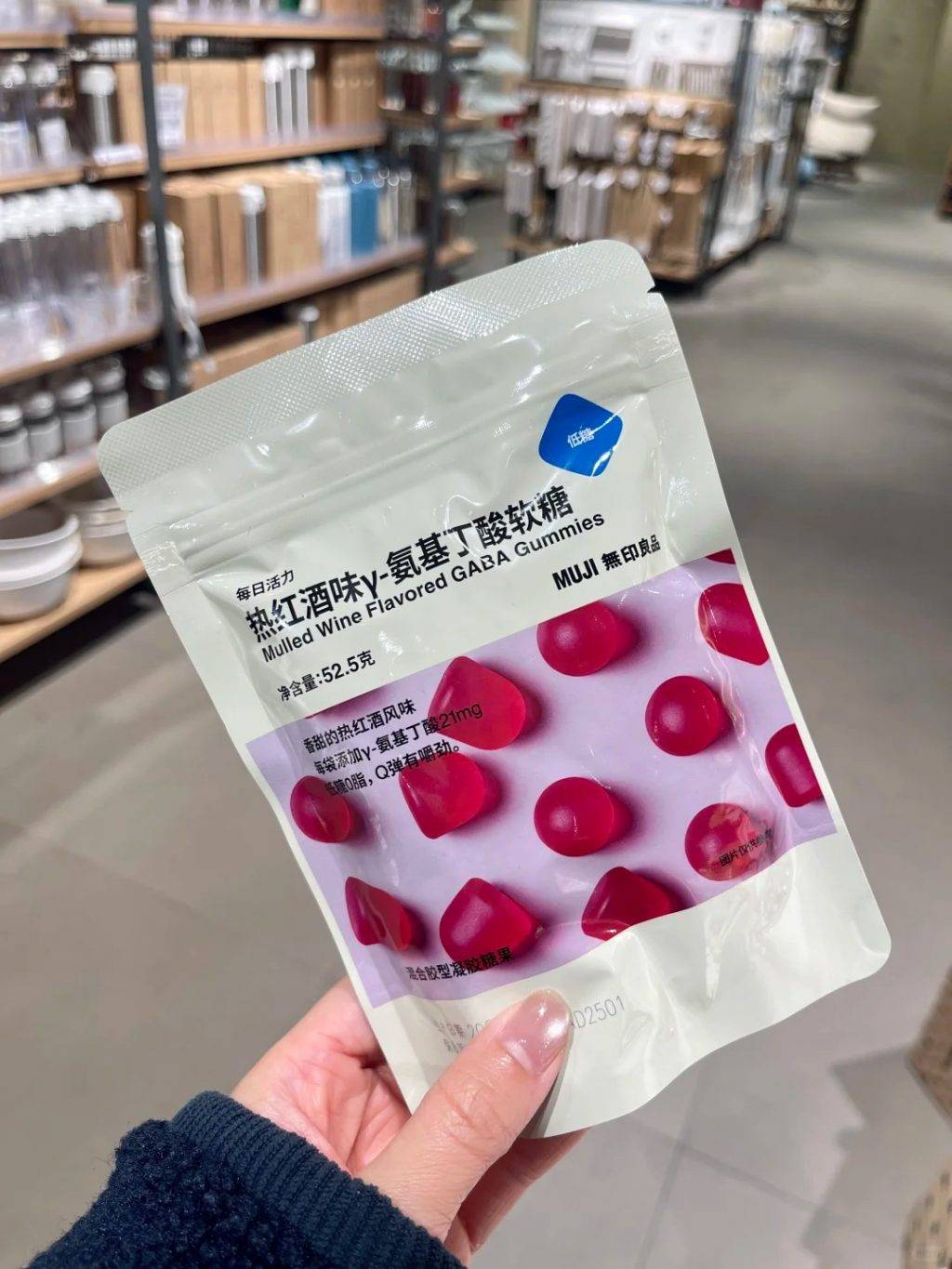 中國MUJI新推出的熱紅酒味助眠軟糖於小紅書爆紅,更被譽為「失眠救星」!內含GABA(γ-氨基丁酸)成分,能有效調節神經系統,幫助舒緩壓力、緩解焦慮、促進生長激素分泌,從而令人更易入眠。而且價錢親民,只需15元人民幣就買到。