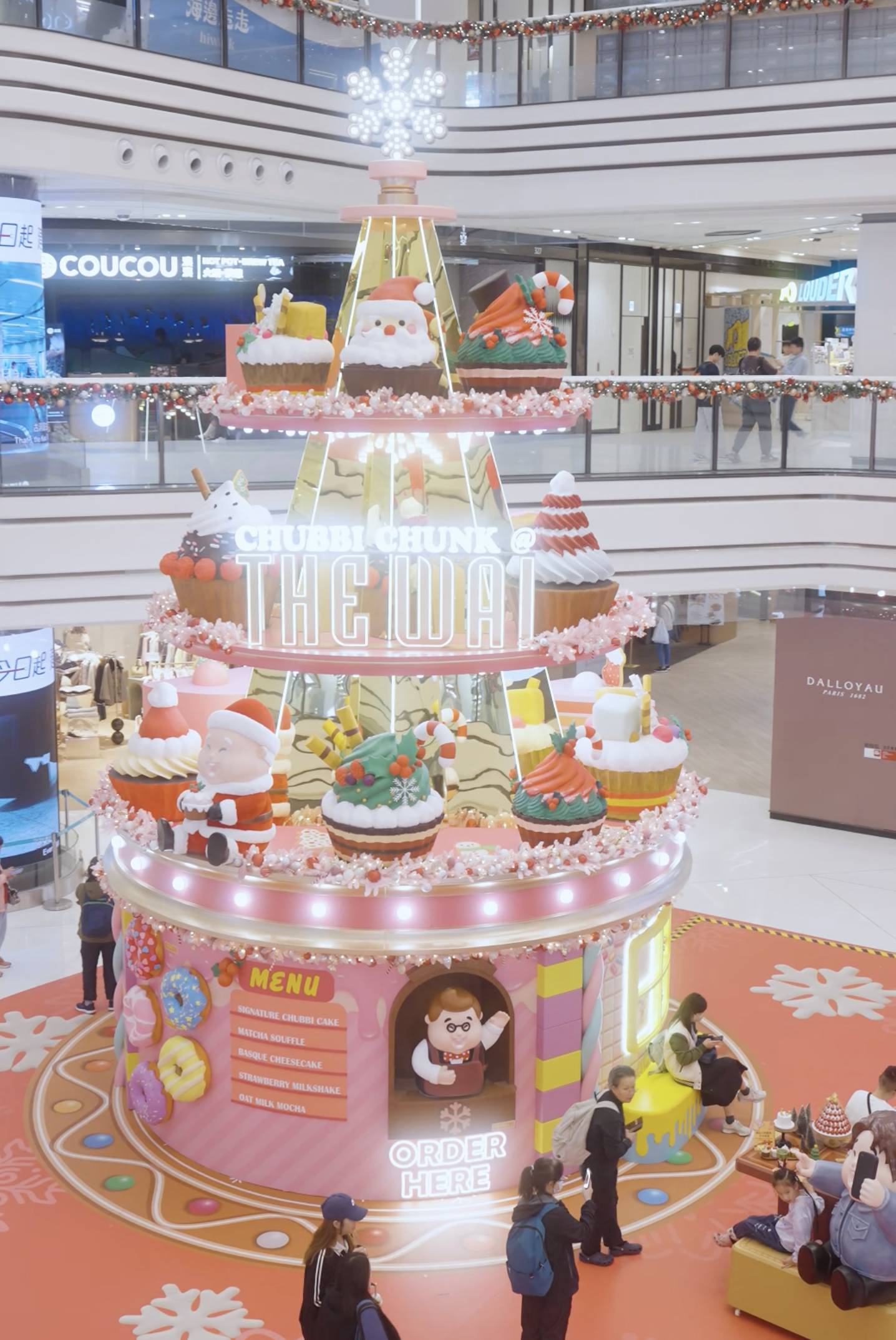 樹下除了有Chubbi Chunk Cafe店面可以打卡,更展示咗歷代經典Chubbi Chunk造型,粉絲可以一次過近距離欣賞!旁邊更有樓高3層的巨型環迴LED螢幕,變身「LED聖誕糖果工廠」,鬼馬的Chubbi Chunk會帶領大家暢遊甜蜜國度,興奮地製作各式美味甜點!