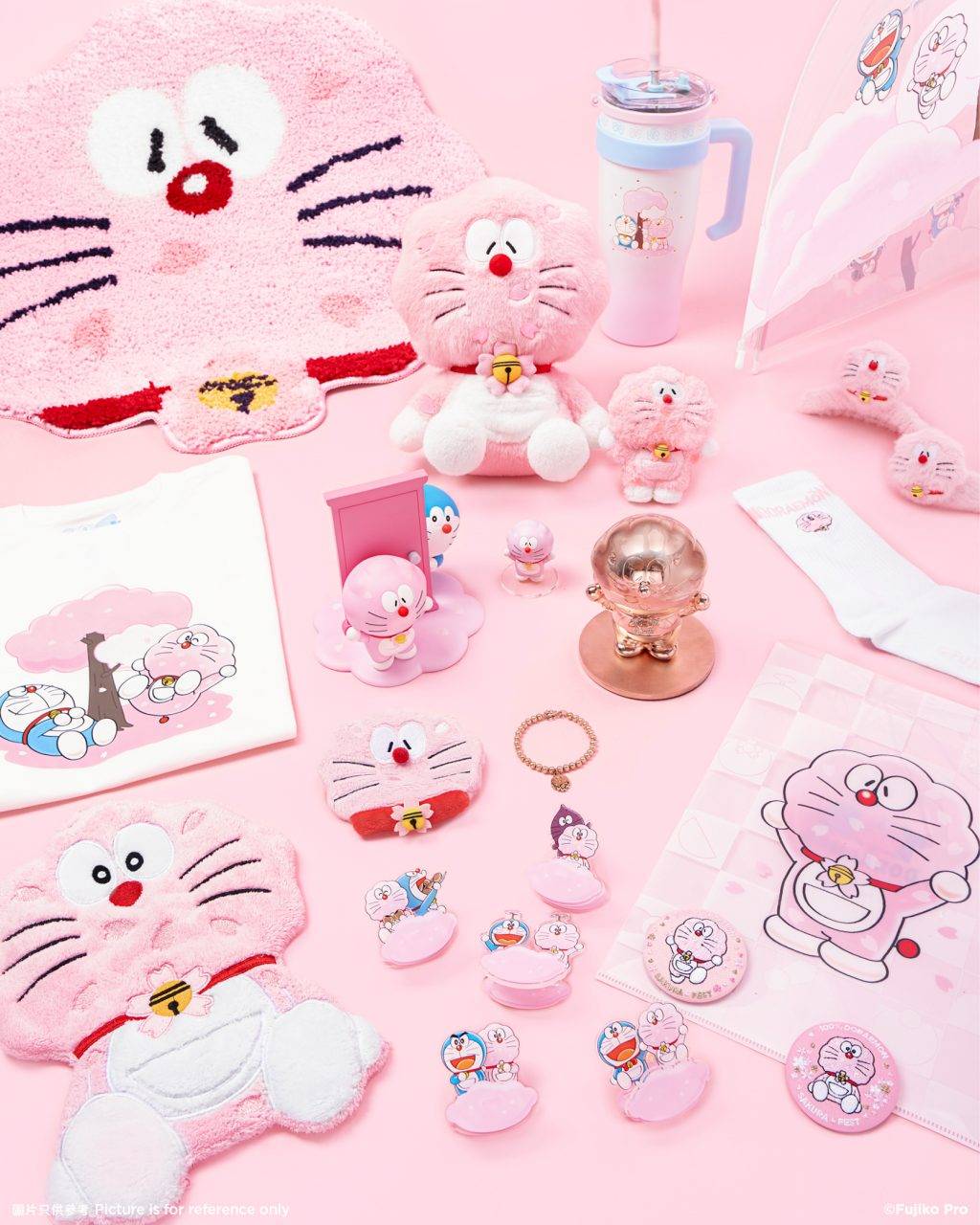 其中「櫻花多啦 A 夢」毛絨鎖匙扣特別注入了淡淡櫻花香氣,讓芬芳隨身;而趣致十足的「飯糰多啦 A 夢」毛絨鎖匙扣在按捏時會發出像咬下紫菜般的清脆聲音。此外,主題限定款 T 恤更特別採用感光 設計,在陽光照射下會即時浮現粉嫩的櫻花圖案。系列更加入受粉絲喜愛的驚喜盲盒元素,包括一套 6 款的 5 厘米迷你公仔(設有隱藏版),以及 A4 光柵文件夾套裝,利用光柵技術呈現生動的視覺效果。