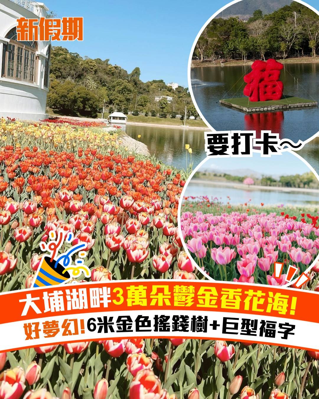 大埔湖畔3萬朵鬱金香花海!好夢幻 6米金色搖錢樹+巨型福字