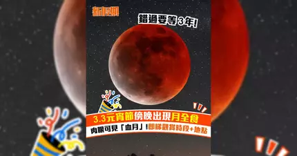 香港天文台預告,3月3日(星期二)傍晚上空上演月全食,若天氣晴朗,市民面向東方無障礙地點即可肉眼直擊全程,元宵夜賞「血月」超浪漫。