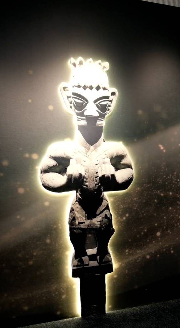 三星堆與金沙遺址的發現,證實了成都平原作為長江上游文明起源中心的重要性,是中華文明「多元一體」的典型例證。古蜀文明發源於長江支流,而香港則依傍南海,兩地看似遙遠,卻共享「水作為文明載體」的特質。本次特展以創新數字技術,引領觀眾探索區域文明的過去與現在,展開一場以當代科技重構的文明溯源之旅。此外,展覽內外設有多個拍照打卡點,例如戶外大型橫幅及真人大小的紙板公仔,入場前別忘了拍照留念!
