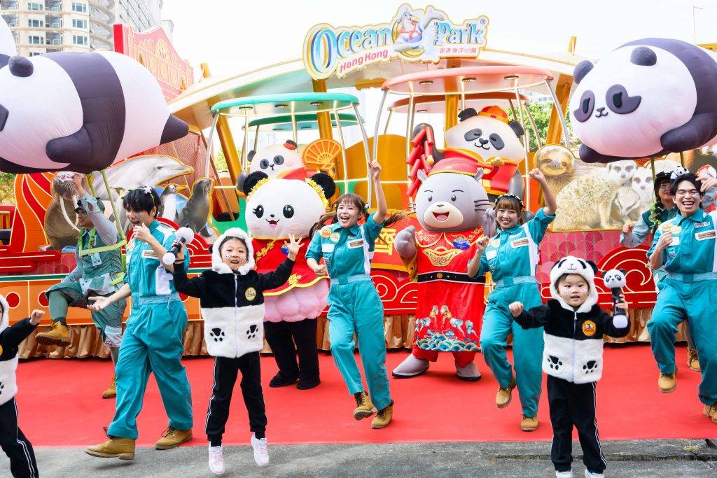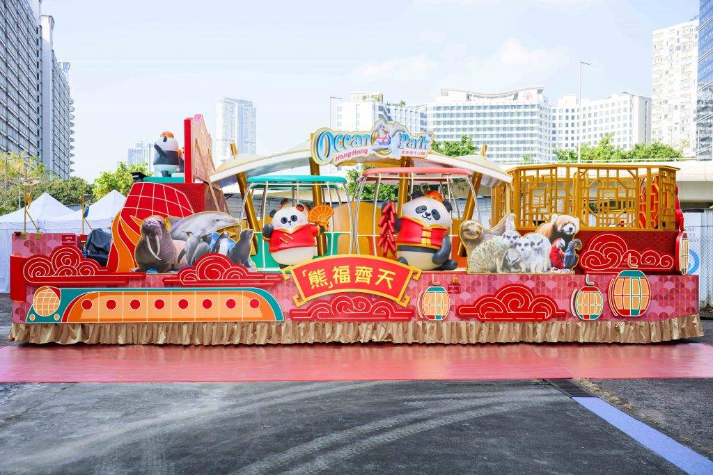 香港海洋公園嘅大熊貓家族換上新春造型同大家拜年,祝願人人「熊」運當頭!花車集合海洋列車、纜車、摩天輪等標誌性元素,亦唔少得「威威與好友」、公園嘅演藝人員同威威村莊村民齊集啦!